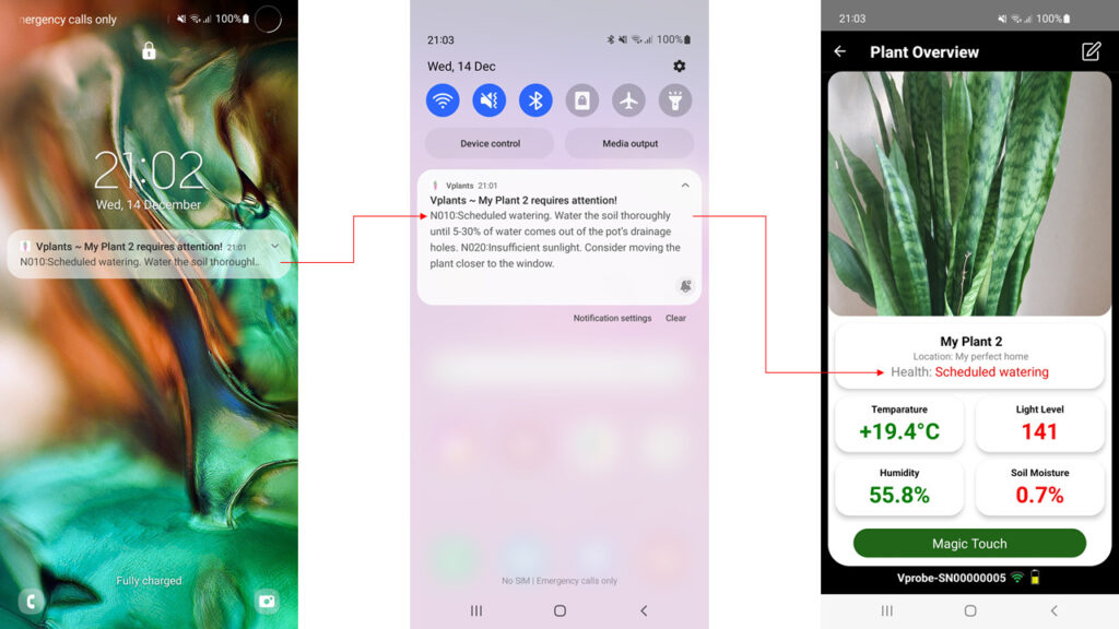 IMPORTANT: Please disable all but not Vplants notifications if possible! This way you’ll never forget to water your plant. Let the plant speak for itself!