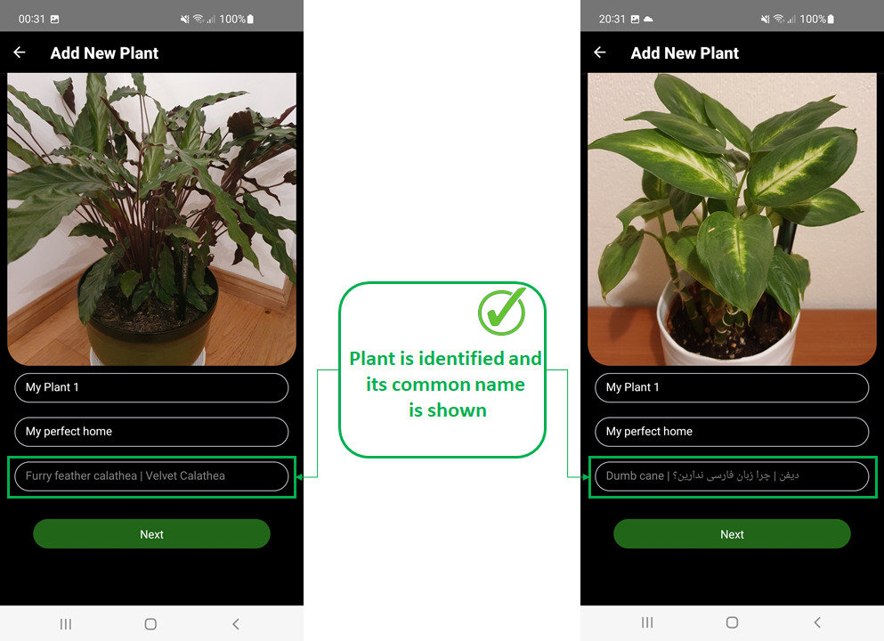 Once the plant was successfully identified Vplants will use its name to retrieve the thresholds and other information from the Vplants database which consists of more than 700K plant species.