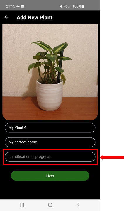 Once the Vprobe was installed click on the ‘Next’ button to take a photo of your plant.