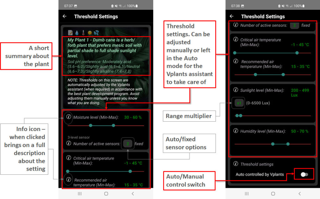 - The intelligent plant sensor then sets optimal thresholds tailored to your plant’s needs.
