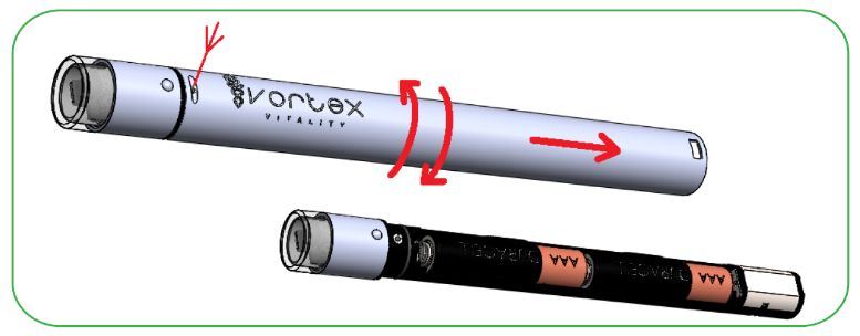 1) Pull out the main Vprobe part (with Vortex Vitality logo) from the box and remove the battery isolator tab
